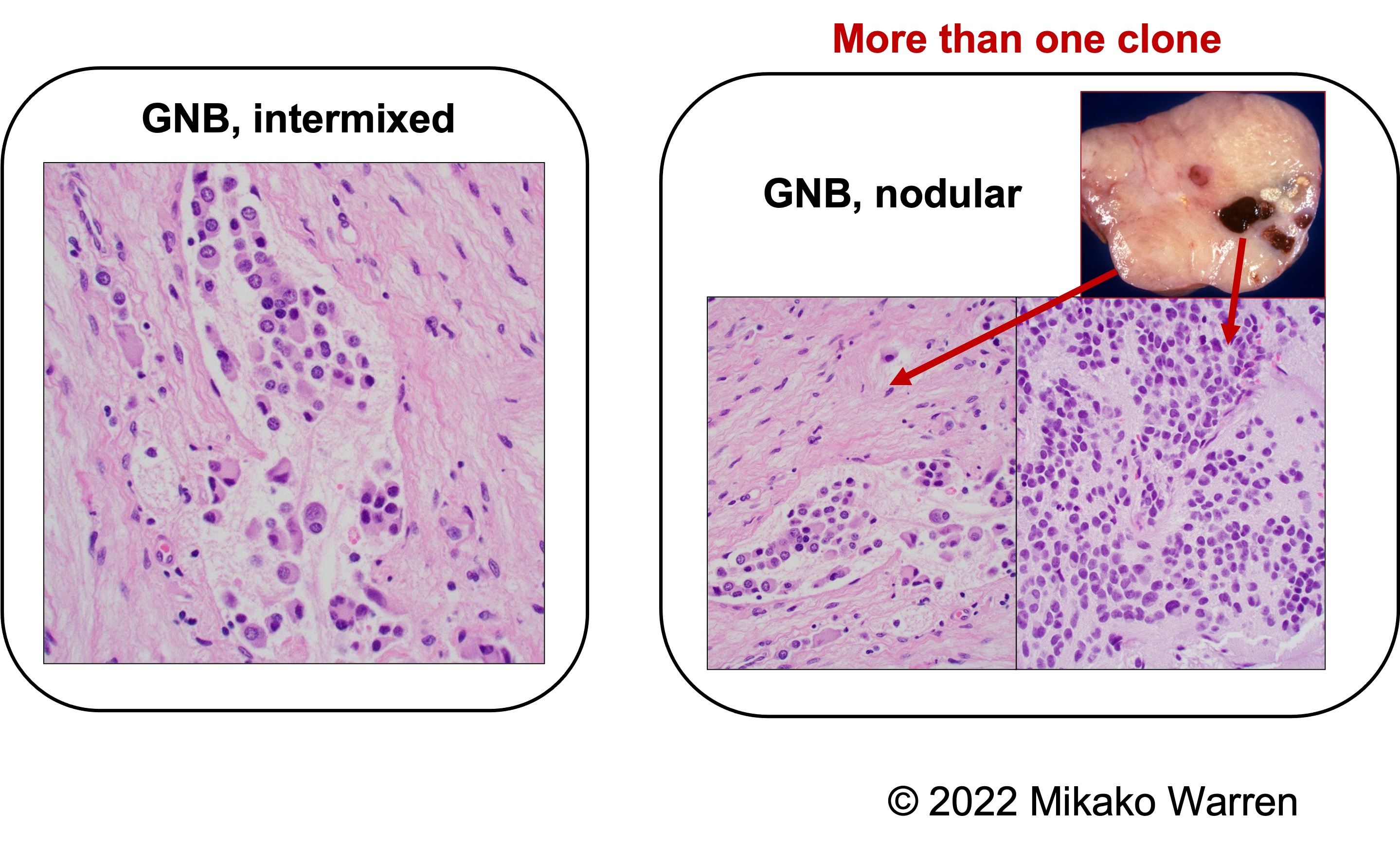 - More than one clone with a Schwannian stroma-poor (NB) component and rich/predominant (GNB/GN) component.
